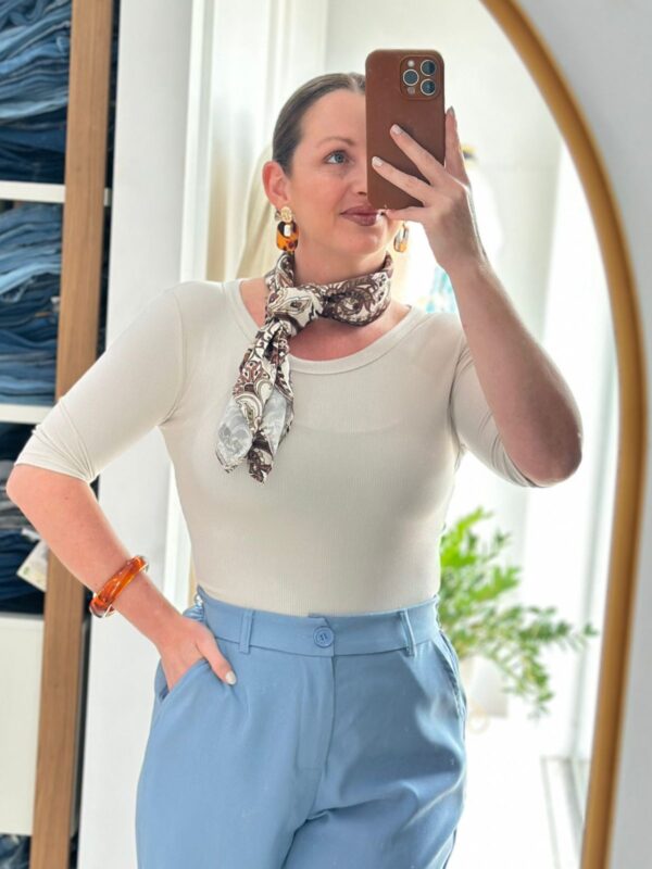 Conforto e versatilidade em uma peça só! Nossa básica de ribana Helo é confeccionada em malha canelada leve e macia, garantindo um caimento perfeito e toque super agradável. Possui modelagem ajustada ao corpo, mangas curtas e decote redondo clássico, ideal para compor desde produções casuais até sobreposições mais sofisticadas.