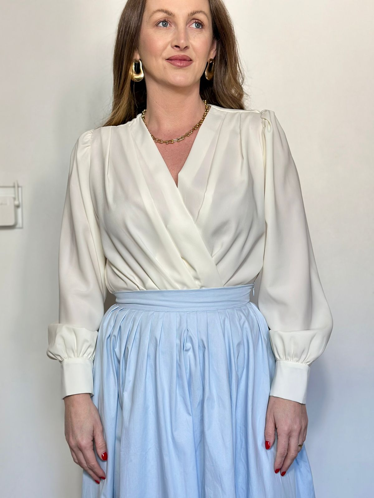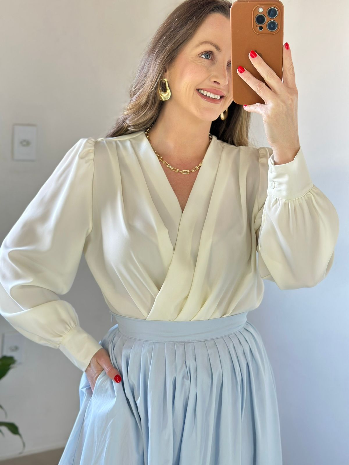 Feminino e super versátil, o Body Gabriela é leve e confortável, possui modelagem ampla, ombros levemente deslocados, mangas longas levemente bufantes com punho largo com botões, decote v transpassado super delicado e fechamento por botões internos. Aposte e combine com os Jeans PV!